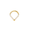 Argola confeccionada em titânio F-136 (grau implante), com zircônias cravadas e sistema de fechamento clicker.