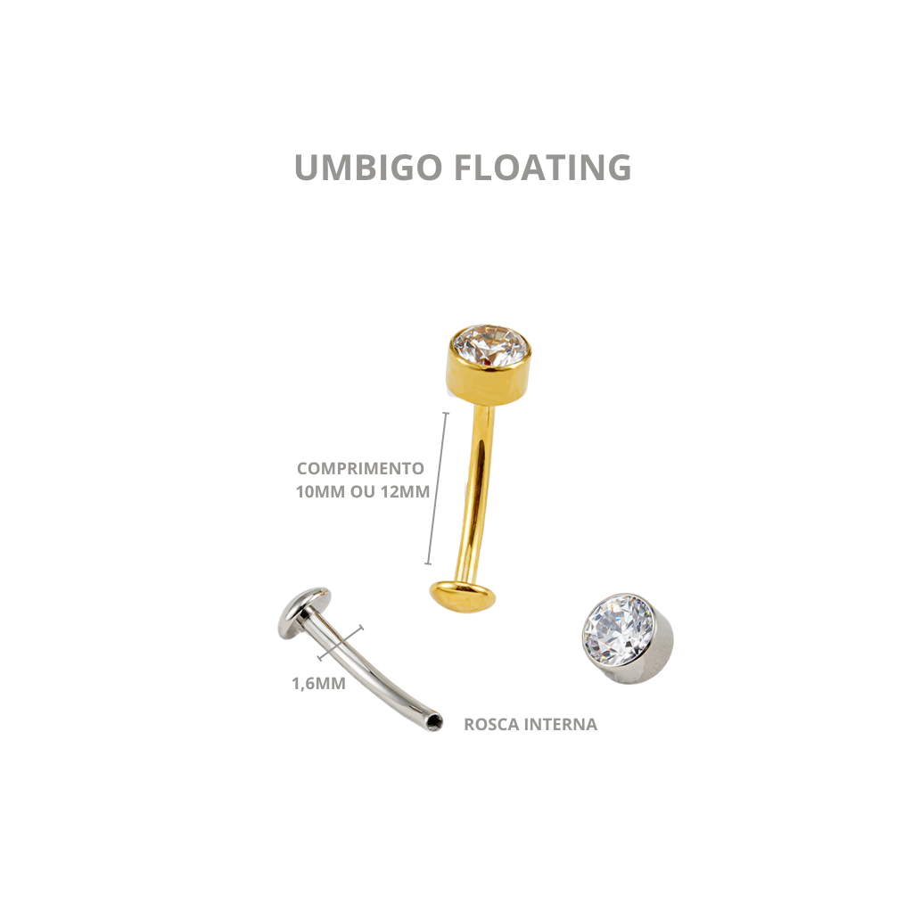 Piercing Bananabell confeccionado em titânio F-136 (grau implante), com zircônia e fechamento com rosca interna. Utilizada em perfuração do umbigo, uma joia clássica e delicada.